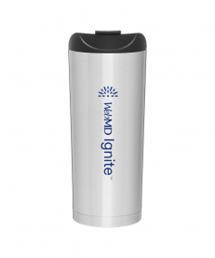 16 oz double wall 18/8 stainless steel thermal tumbler with copper vacuum insulation and threaded snap-fit lid. Individual white gift box. Hand wash recommended. Do not microwave. Complies with FDA, Prop 65. 8.125" H x 3.375" W