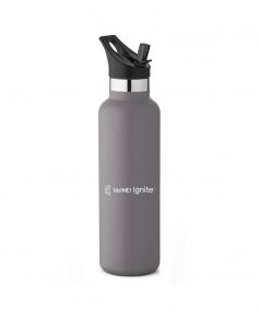 20 oz. Narrow-mouth vacuum-insulated bottle. Features a flip-top straw lid with ergonomic top finger loop. Keeps contents cold for 24 hours. Powder coat finish with copper lining, double wall 18/8 stainless steel, proprietary BPA-free insulated lid. Bottle comes with both screw-on lid and straw lid. 11" H x 2 7/8" Diameter.
