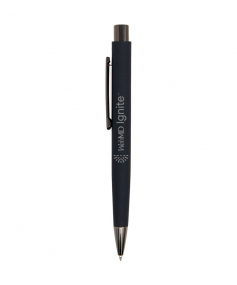 Oval shaped executive pen features soft touch finish and bold gunmetal trim. Generous laser engraved bronze imprint makes you message stand out against matte corporate colors.