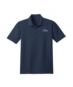 5.6-ounce, 60/40 cotton/poly. Includes double-needle stitching throughout. Flat knit collar and 3-button placket with dyed-to-match buttons. Features open hem sleeves and side vents.