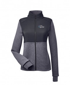 Pillow tech fabric: quilted, lightweight with warmth-retaining fill; Encore double-knit fleece with woven insulation for warmth and comfort; Molded center front zipper with branded zipper pull;